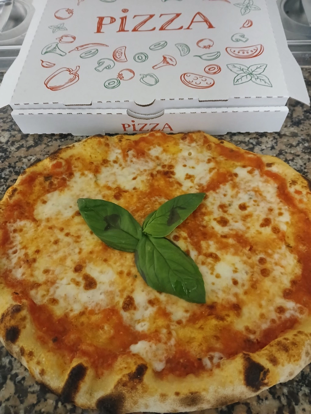 Base tomate, mozzarella, parmesan, huile d’olive, basilic